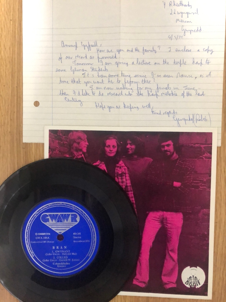 筆者が入手したシングルには、なんと、ギタリストの一人が学校の友人に宛てたメモが入ってました。レコード出すに当たって、プレゼントするのを約束していたようです。この友人が本シングルを中古市場に出したんだね、きっと。